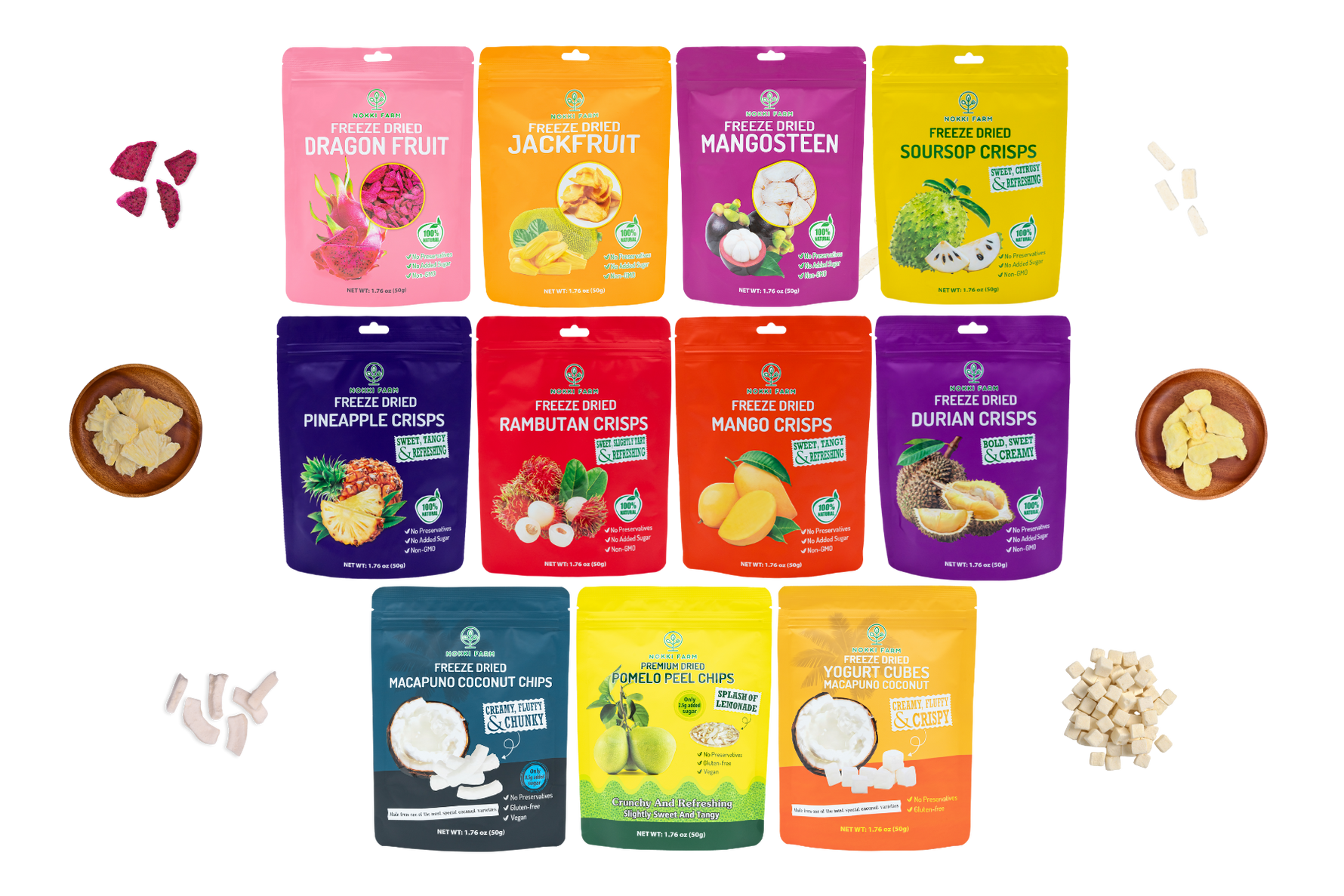 Nokki Farm uses freeze drying to make sure you can enjoy your favorite tropical fruits whole-year round regardless of the season without losing most of their nutritional value.